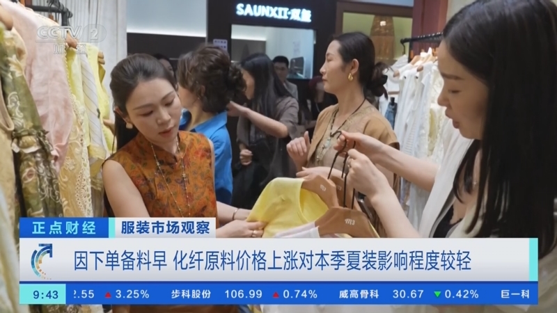 服装市场观察:因下单备料早,化纤原料价格上涨对本季夏装影响程度较轻。