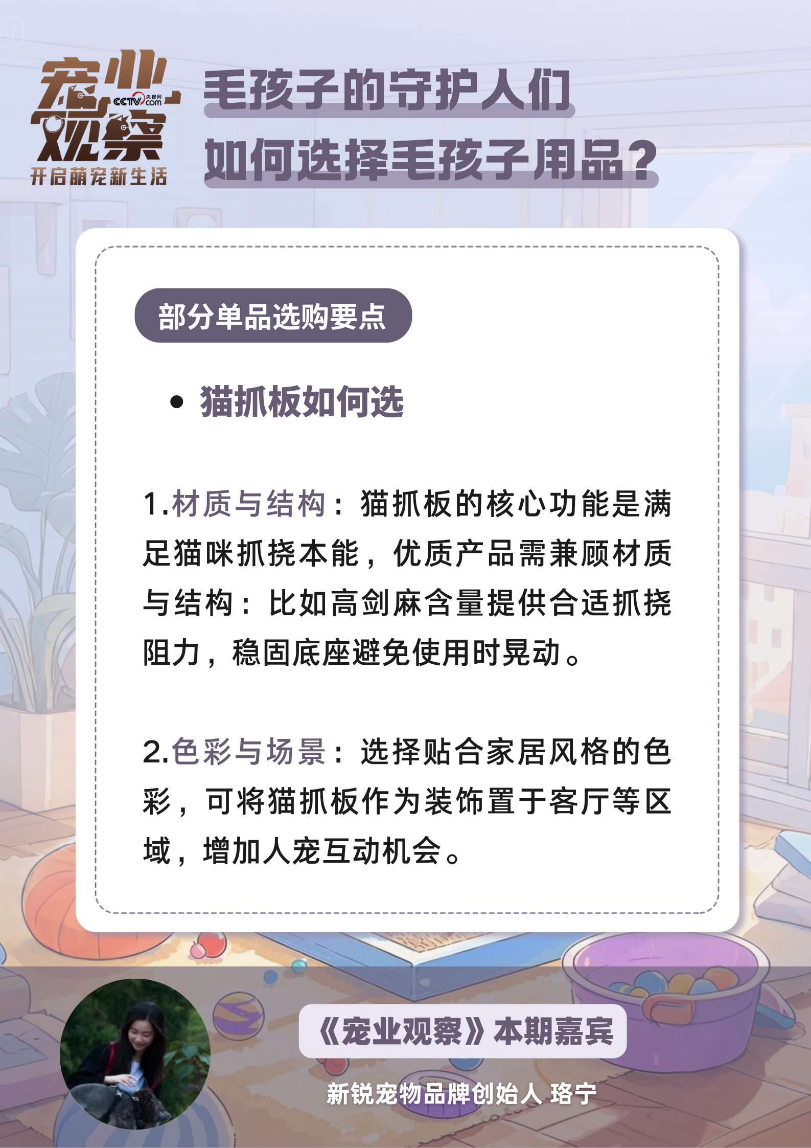 央视网消息:毛孩子家长们看过来,给毛孩子挑生活用品时,这些“隐藏关卡”你遇到过吗?一些号称“剑麻材质”的猫抓板竟然是劣质纤维冒充,喂食碗高度没选对让毛孩子脖子不舒服……选购宠物用品需注意哪些细节?怎样的设计能让你和毛孩子的互动更亲密?