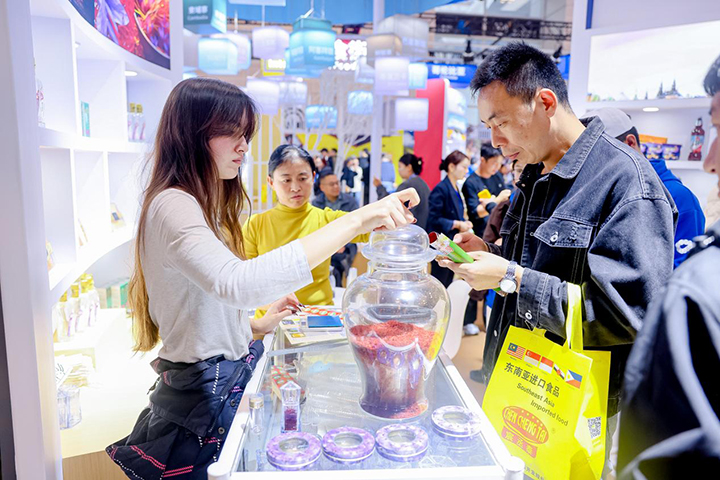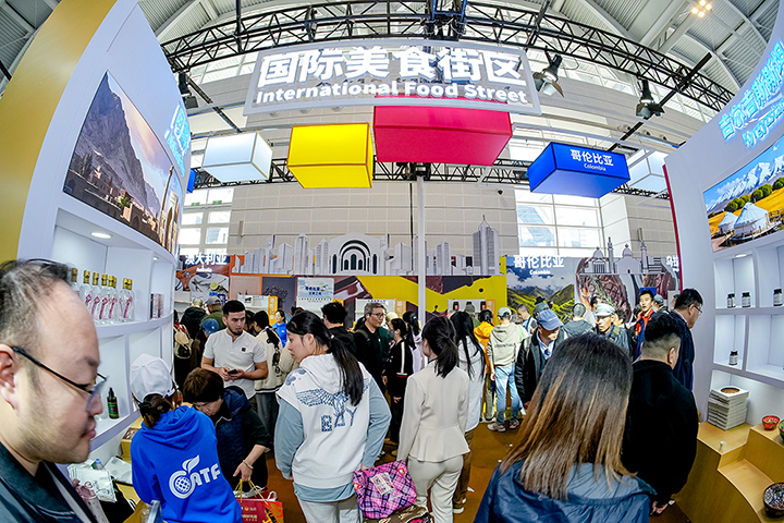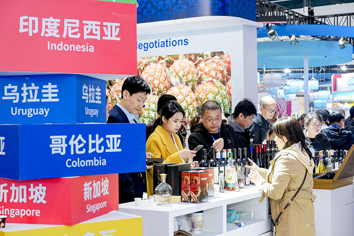 最后,国际美食街区作为历届人气打卡点,继续以“沉浸式味觉之旅”为理念,打造集展示、品鉴与互动于一体的特色区域。街区汇聚摩尔多瓦红酒、乌拉圭牛肉、哥伦比亚咖啡、澳大利亚乳制品、新加坡海苔、印度尼西亚咖啡等6国特色产品,通过现场制作与品鉴交流,推动中外饮食文化互鉴与商贸对接,实现“以食为媒、以贸促合”。