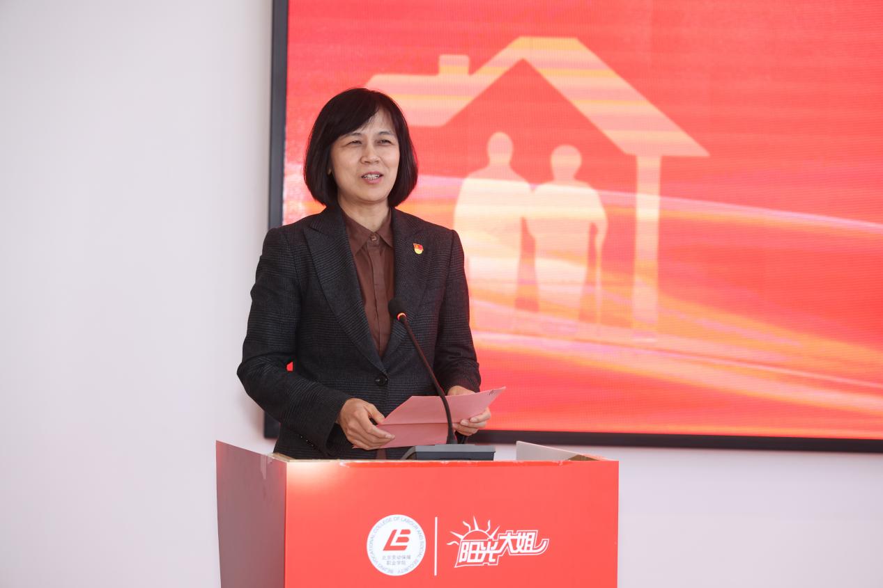 北京劳动保障职业学院党委书记刘丽波在活动致辞中强调,此次与阳光大姐的共建合作,是北京劳动保障职业学院深入落实习近平总书记“大思政课”建设重要指示精神的具体行动,是深化产教融合、推动思政教育与家政服务领域实践深度融合的创新探索。她提出三点希望:一是希望校企双方携手将基地打造成 “立德树人的示范平台”,完善实践教学体系,深化课程思政资源开发;二是希望广大教师以基地为课堂,将行业案例与职业故事转化为教学资源,让思政教育传递 “民生服务的时代温度”;三是希望同学们珍惜实践机会,在服务一线锤炼专业技能、坚定职业理想,书写青春奋斗答卷。