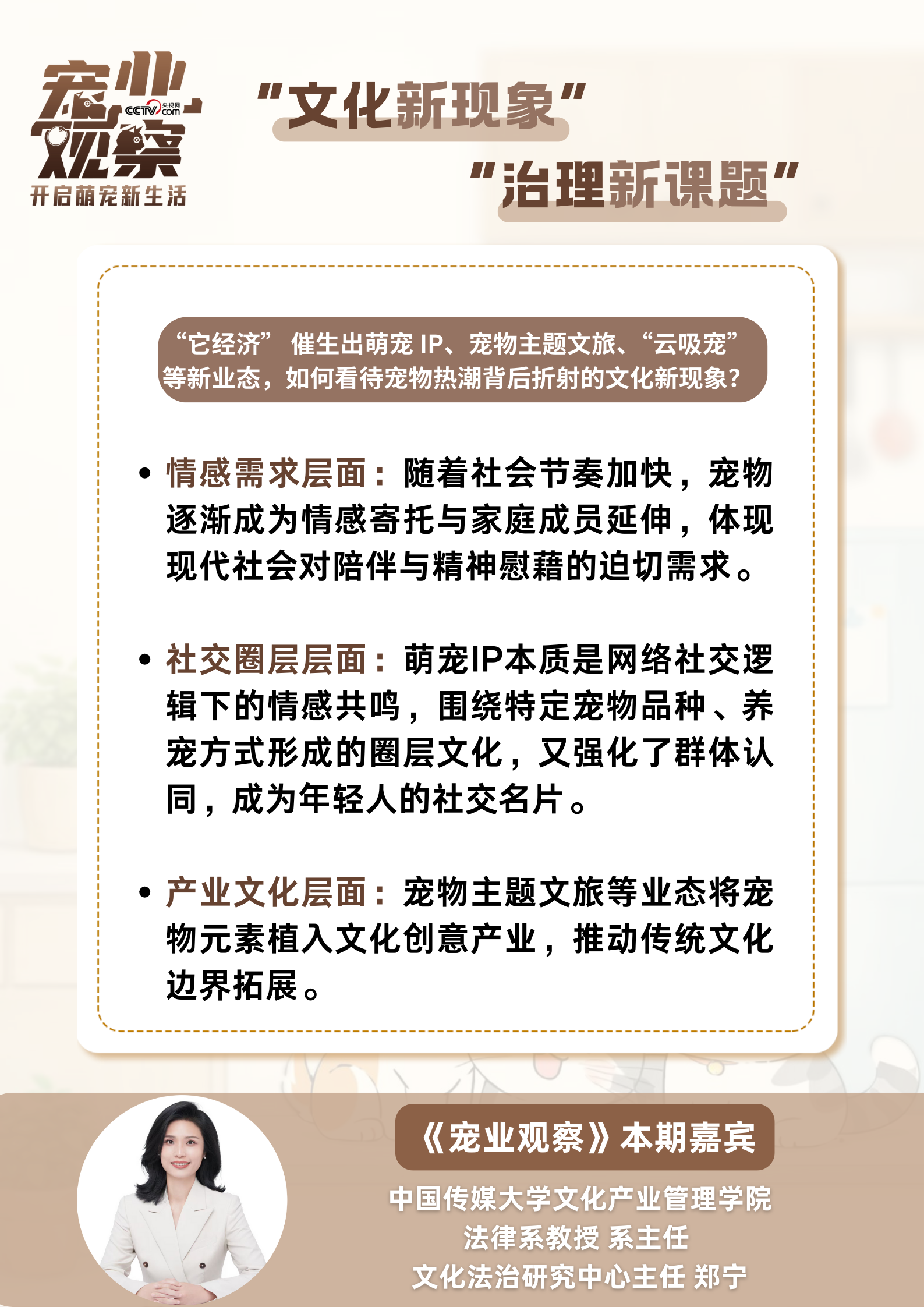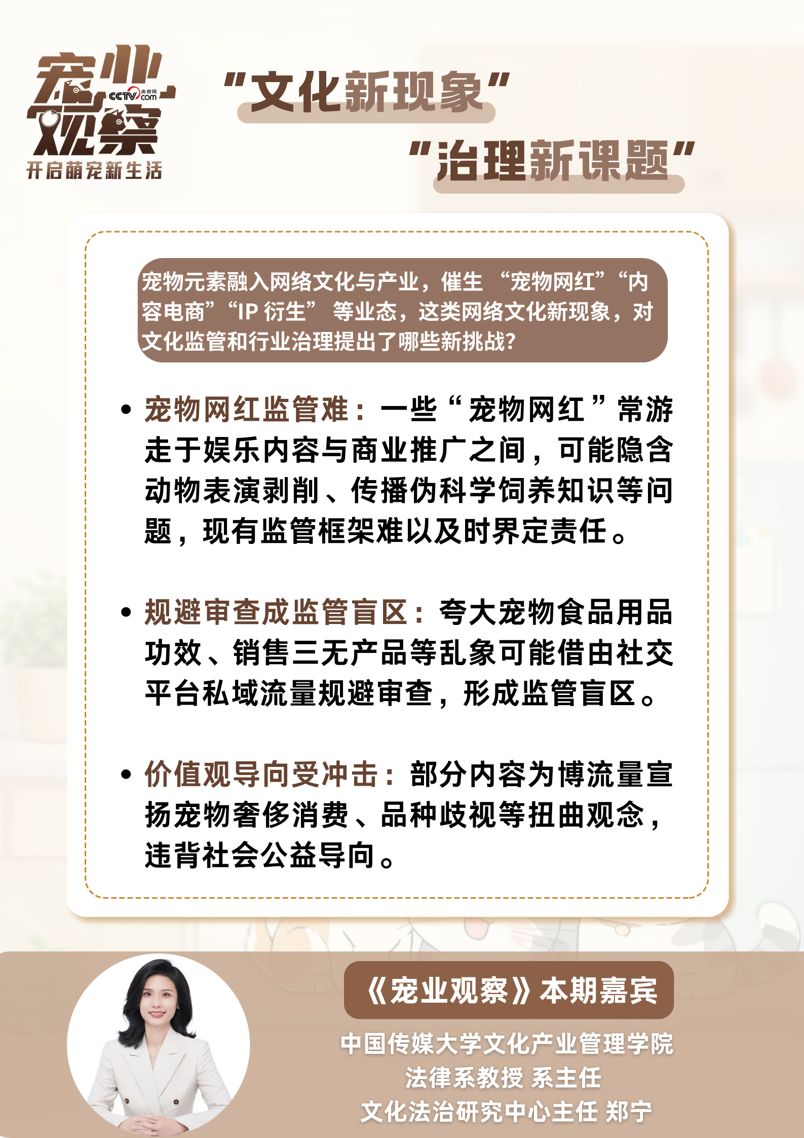 对话中,郑宁教授立足文化法治视角,聚焦“它经济”繁荣背后的深层逻辑与治理痛点,对相关核心问题展开穿透式解读: