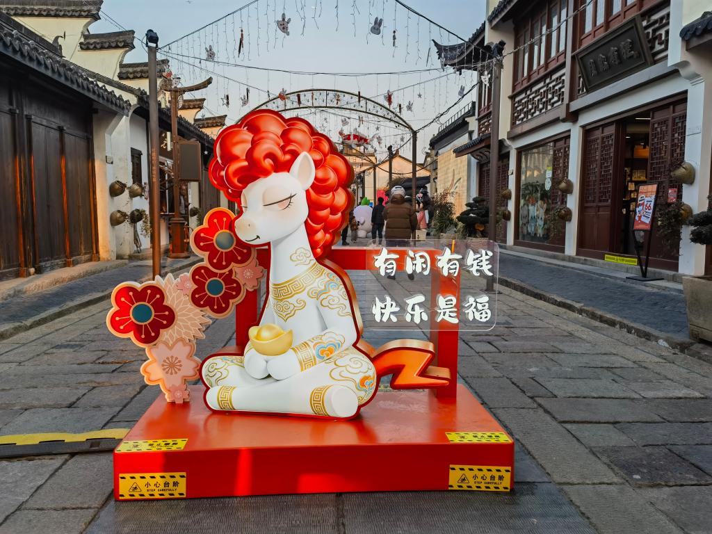 这是设在泗泾古镇主街上的时尚打卡装置。新华社记者 陈爱平 摄