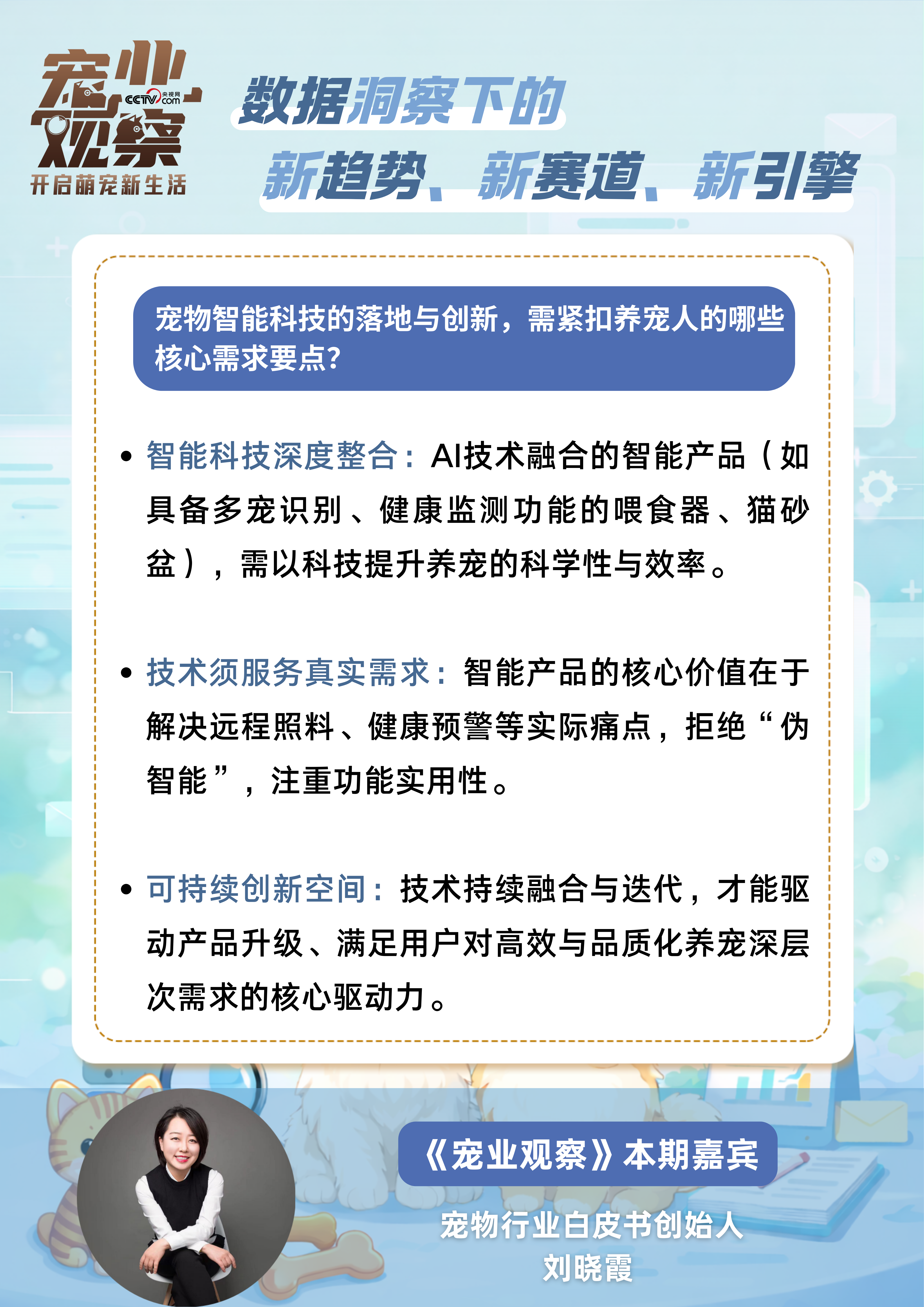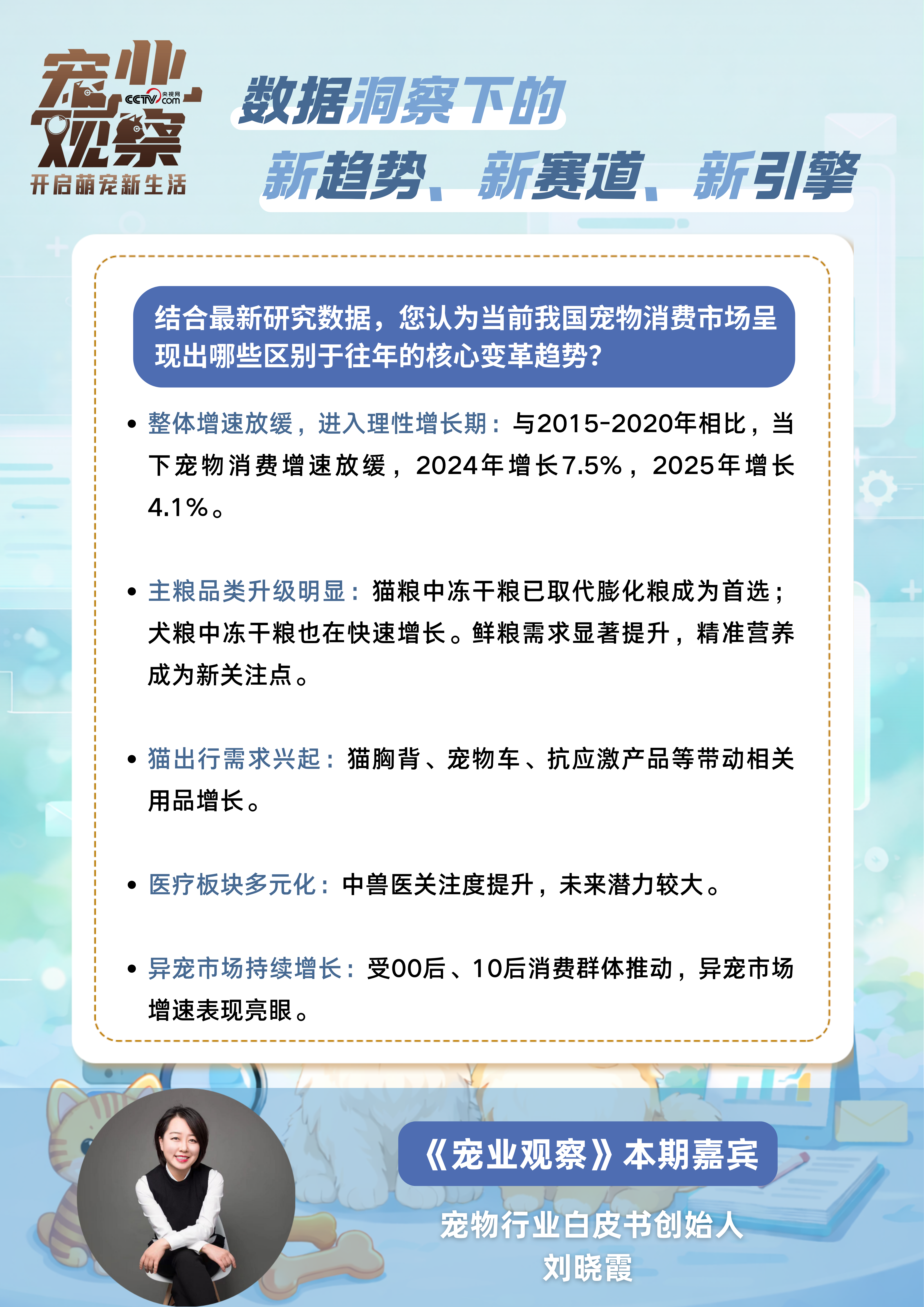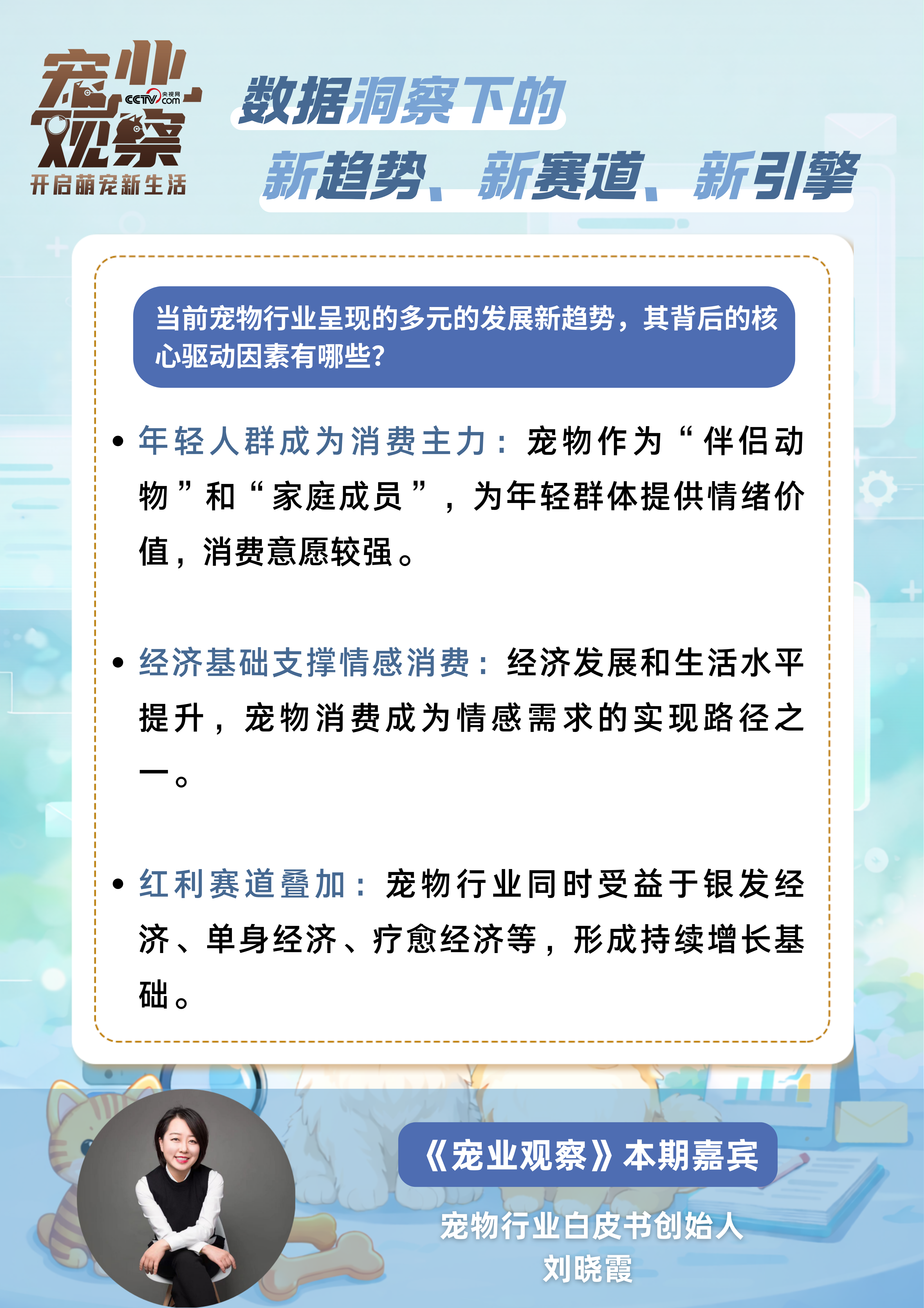 对话中,刘晓霞聚焦宠物消费变革,结合数据洞察解读行业的新趋势、新赛道与新引擎: