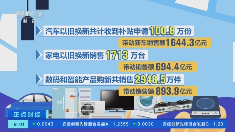 今年以来消费品以旧换新带动销售额超3000亿元